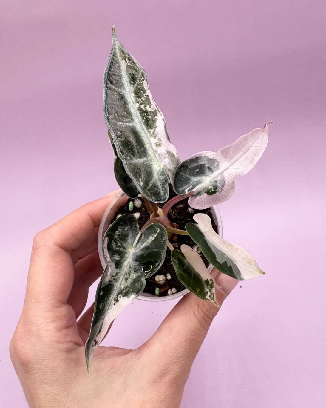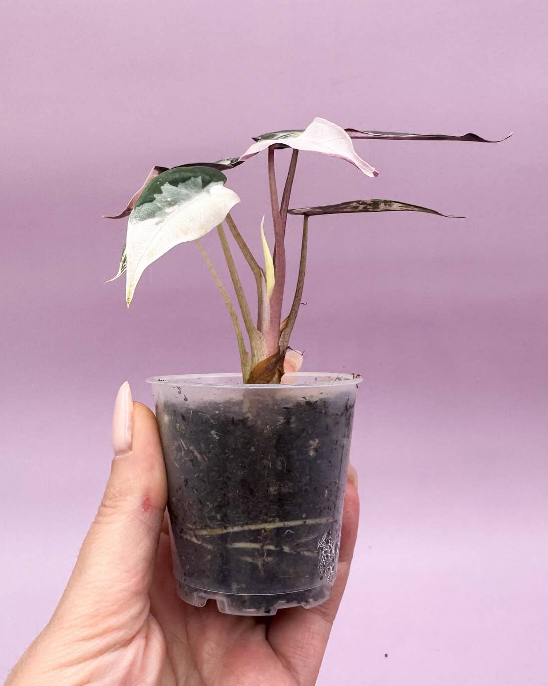 Para crecer rápido y sano, la Alocasia Bambino Variegata requiere mucha luminosidad. Luz indirecta brillante.