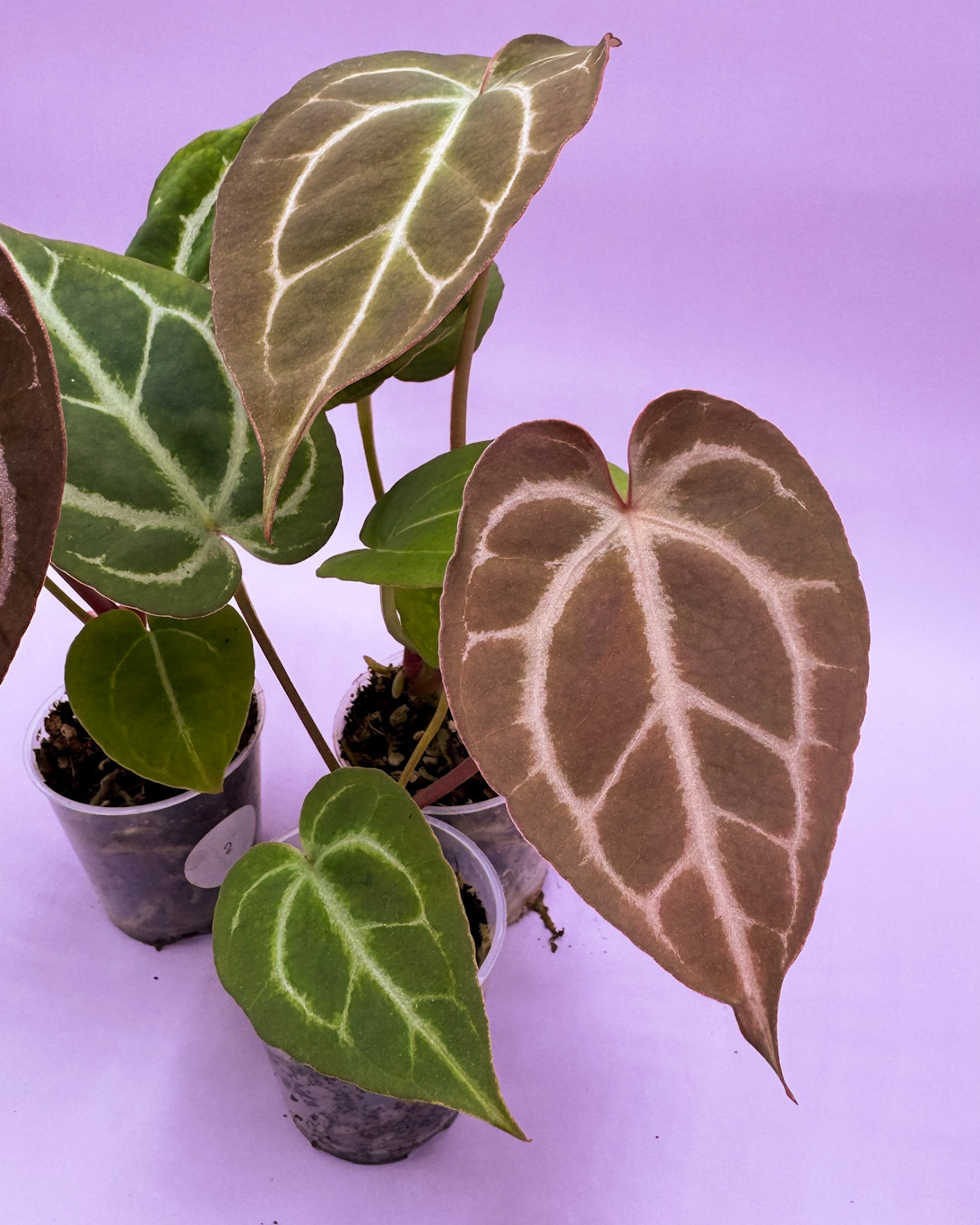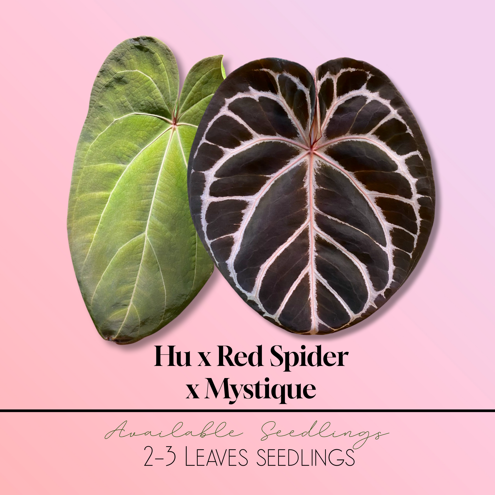 Seedling de Anthurium (HU x Red Spider) x Mystique. El Anthurium Mystique es un hibrido seleccionado de Dorayaki x Red Crystallinum NSE
